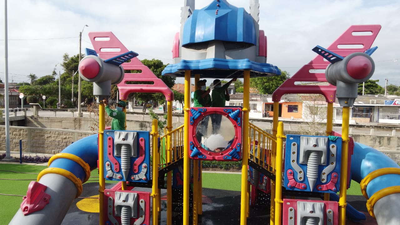 También tiene máquinas para el acondicionamiento físico en el gimnasio biosaludable, cancha múltiple, cancha en grama sintética, luminarias tipo led y proyectores, recuperación de andenes y senderos peatonales, plazoletas, cerca de 2.000 metros cuadrados de zonas verdes y paisajismo, y canecas en todas las áreas para fomentar la cultura ciudadana.