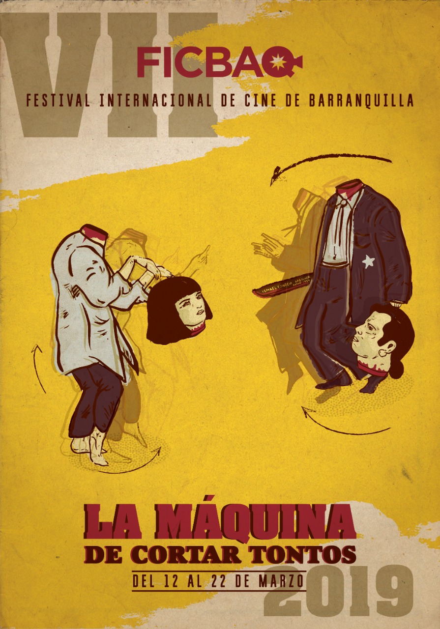Las obras de Ismael Escorcia, creador del tradicional disfraz de ‘el Descabezado’, y del director de ‘Pulp Fiction’, Quentin Tarantino, se encontraron para darle vida al afiche oficial de la séptima versión del Festival Internacional de Cine de Barranquilla (Ficbaq).