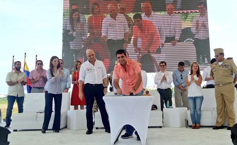 La firma del documento se llevó a cabo en las instalaciones del Batallón Paraíso, con asistencia del alcalde Alejandro Char; el vicepresidente de la República, Germán Vargas Lleras; el ministro de Defensa, Luis Carlos Villegas, y la ministra de Vivienda, Elsa Noguera.