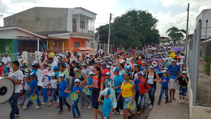 La multitudinaria caminata se realizó en el barrio California con la asistencia de los Caminantes de la salud, estudiantes y docentes de colegios y universidades, profesionales de la salud, EPS e IPS, cementerios, líderes cívicos y madres comunitarias y finalizó en la cancha María de la Paz donde se llevaron a cabo actividades lúdicas, sociodramas, bailes, concurso de carteleras y una muestra en stands sobre las diferentes estrategias para la prevención y eliminación del mosquito Aedes.