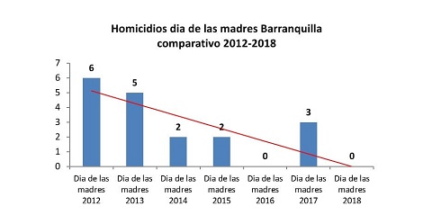 La Oficina Distrital para la Seguridad y Convivencia informó que durante la celebración del día de la madre en Barranquilla, este domingo 13 de mayo, no se registraron casos de homicidios, logrando una reducción del 100%, es decir 3 casos menos, en comparación con el año pasado.