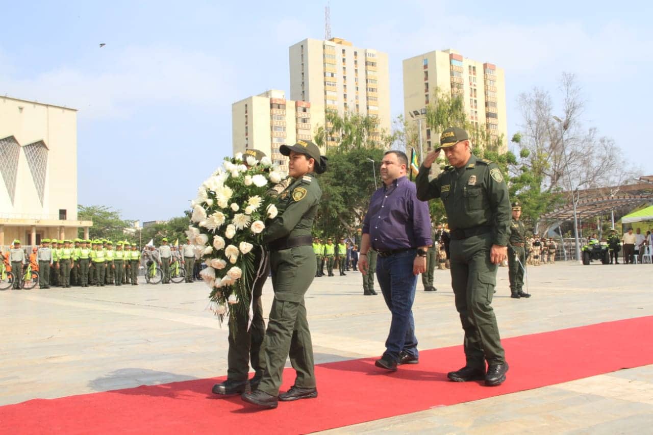 - Se hizo una ofrenda floral del Jefe de la Oficina para la Seguridad, Yesid Turbay y el comandante de la Policía Metropolitana, el General Mariano Botero.