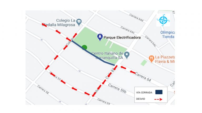 -Los conductores que se dirigen en sentido norte a sur, tomarán la Carrera 56, después la calle 76 hasta la Carrera 54 y llegar a la Calle 72.